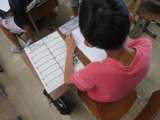 きれいな歌声で合唱をしています。 声の出し方の練習をして,情景をイメージしなが...