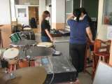 音楽室や図書室をきれいに整理しています。 教室のかべのペンキも塗りなおしています...