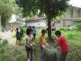 3年生は,校舎裏の草引きをしました。 友達と協力して,たくさんの草を引いて,集...