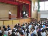 朝会では,校長先生からのお話や転入生の紹介がありました。 また,部活動での表彰...
