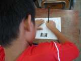 図工で,ホワイトボードを作っています。 思い思いのデザインを電気のこぎりでカット...