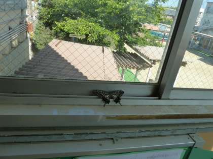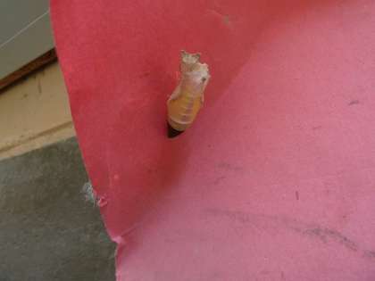 0604 3年生 アゲハチョウ羽化第1号! 公開日 2017/06/06 更新日 2017/06/06 学校の様子 理科「こん虫をそだてよう」の学習で,3年生はアゲハチョウを廊下で育てています。 運動会の代休日明けの今朝,1匹のアゲハチョウが羽化していました。 地面ギリギリにさなぎを作ったので心配していましたが,無事に羽化できました。 大空に飛び立ちたそうに外を眺めていたので,みんなで観察した後,逃がしてあげました。 元気よく飛んでいく姿に,「頑張れよ〜」声をかけていました。