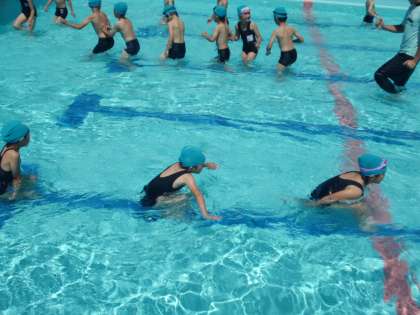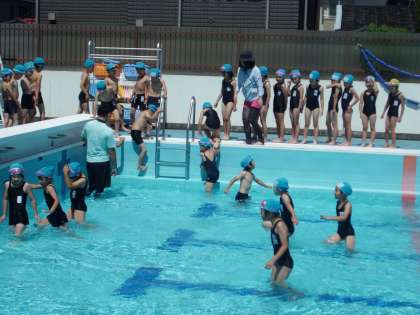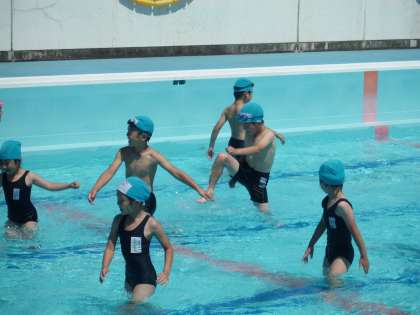 水となかよし〜2年生〜 公開日 2017/06/09 更新日 2017/06/09 学校の様子 今日から水泳学習が始まりました。 低水位のプールで,2年生が水慣れをしていました。前向きに歩いたり,後ろ向けに歩いたり,軽く走ったりとプールの中を散策していく中で, 「こっちがわが深いんや!」「ほんまや!」などの発見をしていました。どんどん水となかよしになって,泳げるようになってくださいね。