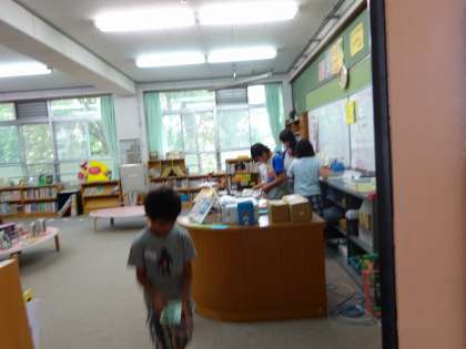 中間休みの様子です。 図書室では,図書委員会の子ども達が当番活動をしていました。