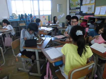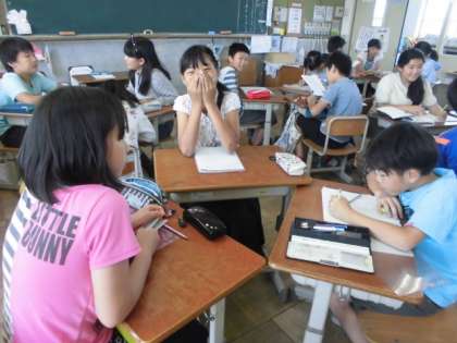 0614 5年生 きいて,きいて,きいてみよう 公開日 2017/06/14 更新日 2017/06/14 学校の様子 国語科で『きいて,きいて,きいてみよう』の学習をしました。今日は3人グループになり,きき手・話し手・記録者と役割を交代しながらインタビューに挑戦しました。きき手は,「相手の意見に対して相槌をうつ」「相手に聞こえる声できく」「相手が質問に困ったら質問を変える」など色々なことに留意をして,進めることができました