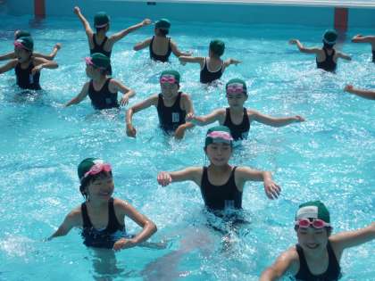 4年生は明親小学校で一番児童数が多い学年です。たくさんの仲間とともに,励まし合って泳ぐ姿が素敵でした。