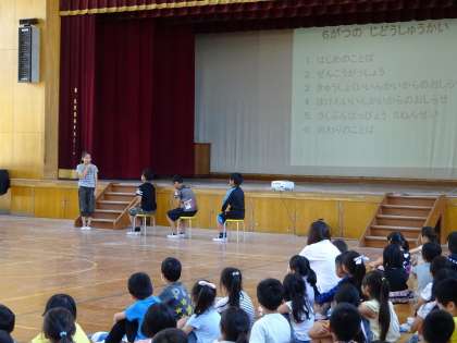 委員会からの連絡では,給食委員会と 保健委員会から立腰の話がありました。