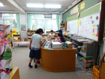 中間休みの様子です。 図書委員会の子ども達が,当番活動をがんばっています。