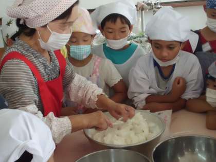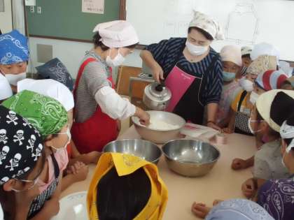 ちまき作り〜3年生〜 公開日 2017/06/16 更新日 2017/06/16 学校の様子 3年生が「ちまき作り」の体験をしていました。 明親では,地域女性会の方々にお世話になり,総合的な学習の時間の地域学習として毎年この体験をさせていただいています。 粉と砂糖とお湯を合わせてこねていただいている様子です。この作業は,熱いので子どもはさわることができません。興味津々で女性会の方の手元を見つめていました。ときどきマスクを外しておいしい匂いを確かめながら・・・