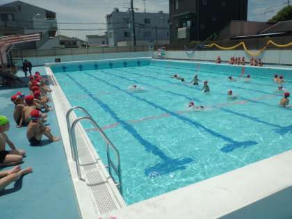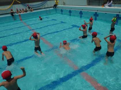 まだ水泳学習には,少し寒いのですが嬉しそうに元気いっぱいがんばってます。
