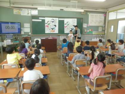 1年生 今週の様子5 〜食の指導〜 公開日 2017/06/17 更新日 2017/06/17 学校の様子 木曜日,1組では食の指導で,栄養教諭の河野先生とお勉強をしました。 初めてランチルームで食べた給食にもうっきうきでした♪