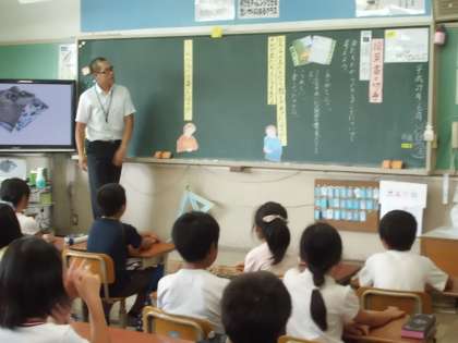 今日は3年2組で,「絵葉書と切手」という教材を使った道徳の時間の学習がありました。今日は特別に,校長先生,京都市教育委員会の先生,3年生4年生の先生が見に来られました。