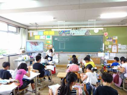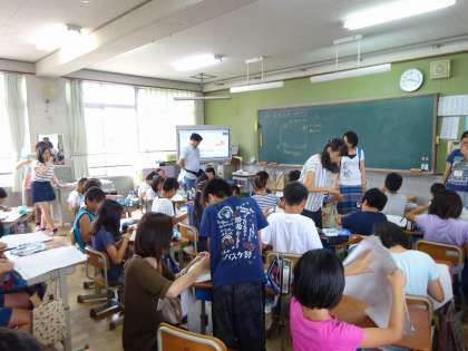 5年生の学習の様子です。 ナップサック制作の様子です。 丁寧になみ縫いをしていました。