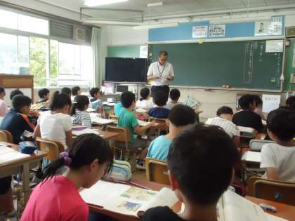 2組は国語。「夏の楽しみ」で夏といえばこれ,ということば集めをしていました。これがいわゆる季語となる俳句を作るという学習でした。松尾芭蕉や,小林一茶のようなすてきな俳句ができたでしょうか。