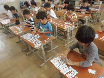 1年生 今週の様子4 計算カードを使って学習 公開日 2017/06/25 更新日 2017/06/25 学校の様子 たしざん(1)の勉強が終わり,計算カードを使って練習することにしました。 その前にどんなカードがあるかなとみんなで仲間分け 「答えが10のカードがめっちゃ多い!」 「なんで!」 「1全然ないやん!!」 と少しずつ,計算の秘密に迫ってきています。