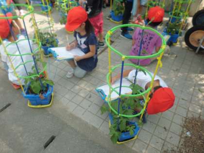 今週はたっぷり雨が降って,しっかり陽が照ったのであさがおがにょっきにょき急成長しました。自分の背の高さよりも高くなったあさがおに驚きつつ観察開始。