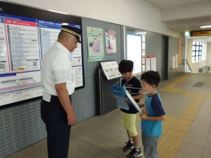生活科の学習で,自分たちのすむ地域の人たちにインタビューをしました。お話を聞きたいお店や施設ごとにグループにわかれて出かけました。いろいろなお話を詳しくきかせていただき,とても貴重な経験となりました。写真は京阪淀駅に行ったグループです。
