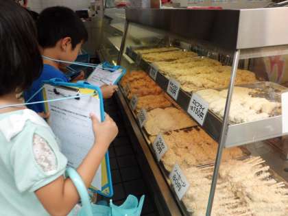 町の人にインタビューその4(2年) 公開日 2017/06/28 更新日 2017/06/28 学校の様子 商店街のコロッケ屋さんです。いろいろな揚げ物を準備されているところでした。おいしさの秘密についても質問しました。