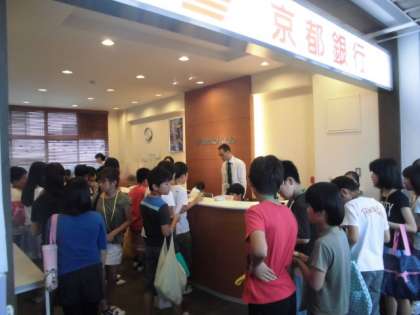 第1ピリオドでは,ショッピングの前に区役所で住民登録,京都銀行で給料を普通預金から電子マネーに移す作業があります。そのため,たくさんの人が区役所,京都銀行に訪れます。
