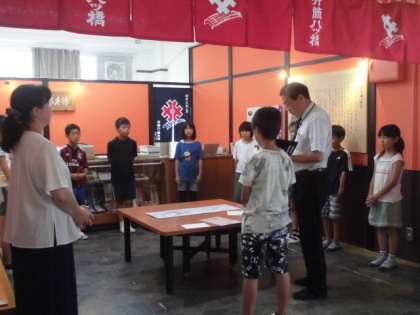 最終の社内会議の様子です。感想を話し合ったり,ボランティアの方々から1日を振り返りお話をしていただきました。