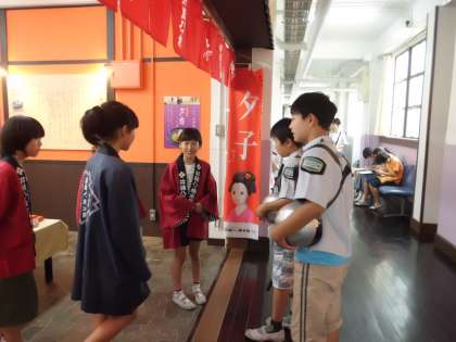 仕事では,明親小学校と他2校の児童とが協力してそれぞれのブースを担当します。店長だったり,会計担当だったり,と持ち場の責任を課せられます。どの児童も,朝は緊張したぎこちなさが隠せない感じでしたが,時間が経つにつれて,打ち解けてきて,それぞれのアイデアを出し合って生き生きと活動できていました。