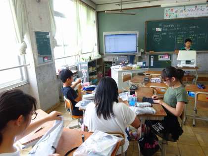 家庭科の学習の様子です。 ミシンを活用して,エプロンを作成しています。