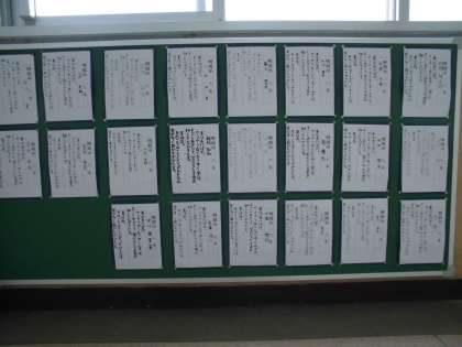 6年生は俳句?でしょうか。近くには先生にインタビューをしたカードがはってあり,楽しく読みました。