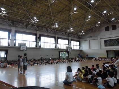 次に給食委員会と保健委員会のお知らせがありました。縦割りで集まっても静かに話の聞ける子ども達です。