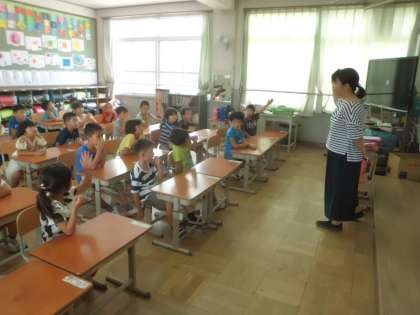 1年生 今週の様子4 〜食の指導 ランチルーム〜 公開日 2017/07/14 更新日 2017/07/14 学校の様子 今週は2組が食の指導で河野先生と学習しました。 給食時間のマナーについて勉強しました。 ・三角食べ ・口を閉じて噛む ・姿勢 など,大切なことを教えてもらいました。 そして,待ちに待ったランチルーム給食もとっても楽しかったですね。