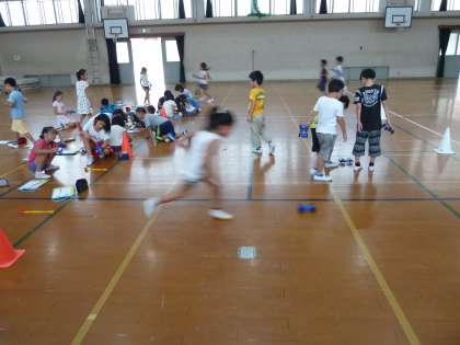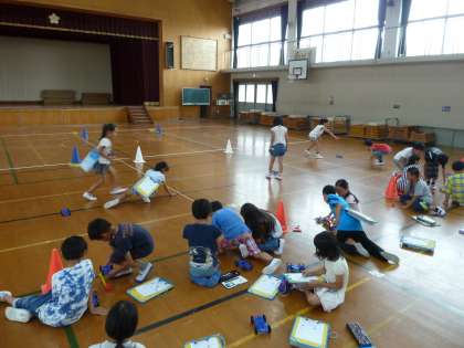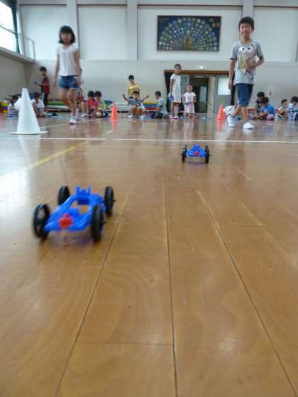0712 3年2組 ゴムや風でものをうごかそう(ゴム編) 公開日 2017/07/14 更新日 2017/07/14 学校の様子 3年生になって理科が始まり,これまで昆虫や植物など生物分野の学習しかありませんでしたが,今回は「ゴムや風でものをうごかそう」です。 まず最初はゴムの力で車を走らせます。ゴムを伸ばせば伸ばすほど車は遠くまで走るのだろうか?初めての実験らしい実験に,子どもたちは歓声を上げながら学習していました。