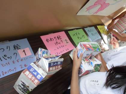 何やら職員室前の廊下に楽しそうな物が・・・。休み時間になると興味を持った子どもたちが集まってきます。