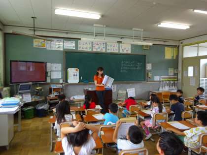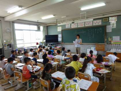 2時間目の様子です。 夏休みのくらしや夏休みの宿題について説明していました。