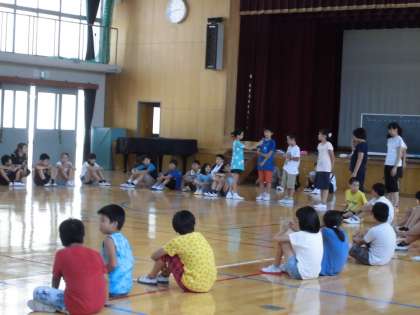 5年生が,8月1日〜4日に長期宿泊学習に行きます。今日は体育館でレクレーションの練習をしたり,一人一人の目標を披露したりしていました。思い出に残る体験学習になるといいですね。