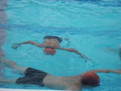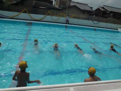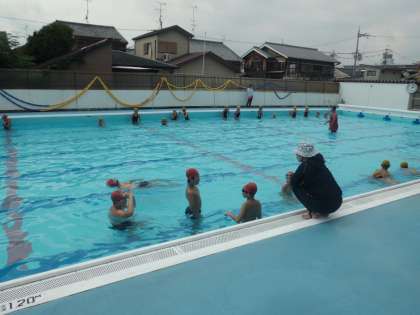 空気をいっぱいためることで浮くということ,水中で空気を吐ききることで,むだのない息継ぎができることを学習していました。