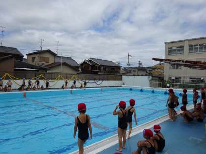 プール開放3日目です。 今日は,午前中は低学年のプール学習になっています。