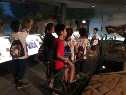 恐竜博物館の見学をしています。