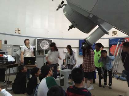 天体望遠鏡で月を見ています。