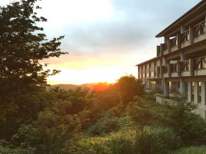 素敵な夕日です。この後,19時よりナイトハイクを行います。