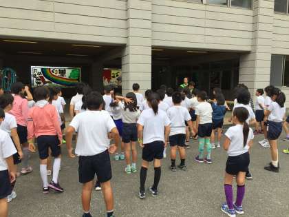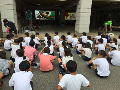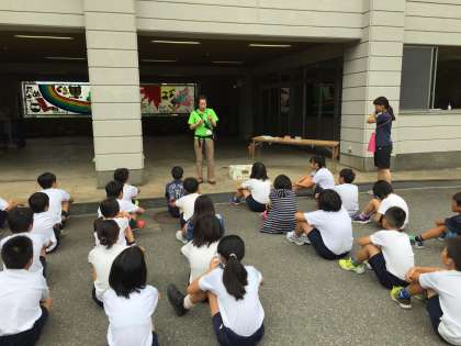3日目の活動が始まりました。クラフトをします。所員の方の説明を聞いています。