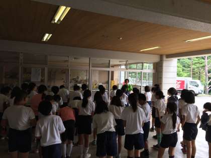 バッジ作りが終わりました。この後の活動の説明を聞いています。