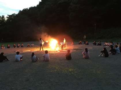 4人の代表が点火しました。炎を囲んで,君をのせてを歌いました。