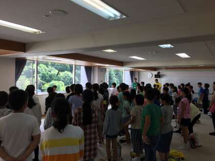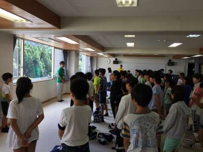 退所式が始まりました。自然の家の所員の方の話を聞いています。