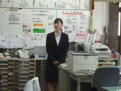 今日は「教育実習生」。朝の職員室で学校長から紹介をされると,少し緊張した面持ちで決意を語ってくれました。