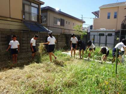 学年園の草抜きをしました。