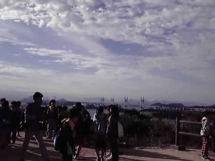 鷲羽山展望台です。これからバスに乗車し,瀬戸大橋を渡り琴平町に向かいます。