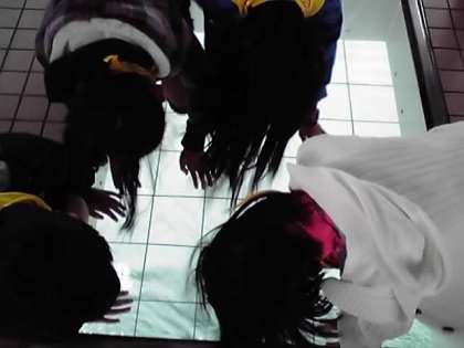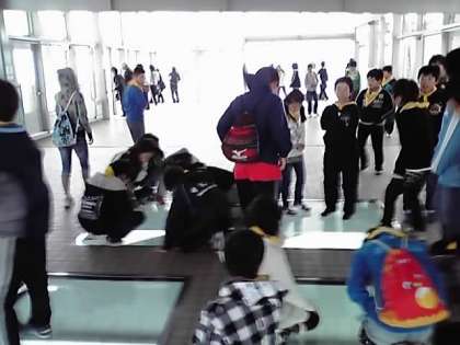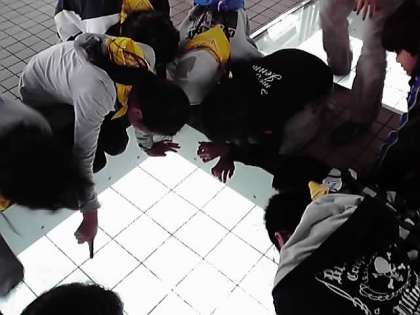 渦の道で渦潮をのぞき込んでいます。渦が見えているようです。