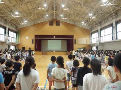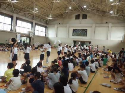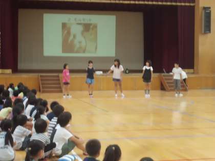 9月児童集会 公開日 2017/09/07 更新日 2017/09/07 学校の様子 今日は児童集会がありました。 全校合唱の新曲「音楽のおくりもの」を初めてみんなで合わせました。この曲はパートに分かれる2部合唱になっています。低学年の児童にはむずかしいのでは?というこちらの心配をよそに,子どもたちは伸びやかな声を体育館にひびかせていました。 各委員会からのお知らせでは,5,6年生の児童がみんなに分かりやすい話し方で発表することができていました。良いお手本を見せてくれました。