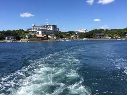 気持の良い晴天の中,船は英虞湾の潮風とともに,なかよし港に向かって進みます。