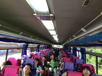 バスの中では,歌を歌いながら,楽しく過ごしています。