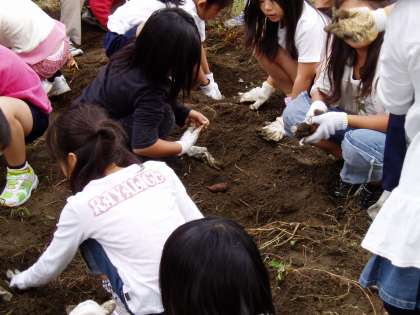2年生は,生活科の学習で「さつま芋」を育てていました。今日は,みんなでそのお芋を収穫しました。予想していた大きさよりも小さくて,少し残念でしたが,次の生活科の時間には,収穫したお芋使ってパーティーを開きます。